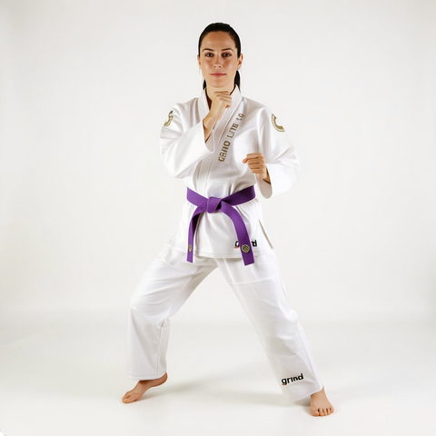 The Grind Lite 1.0 Gi is a must for all grapplers and competitors. Made from 350gsm pearl weave cotton this Gi is lightweight and tough wearing perfect for a comp gi or for training over those hot summer months. Premium ripstop pants come with 4 double drawstring loops and reinforced knees. Quick drying the Grind Lite 1.0 will definitely become your go to gi.
